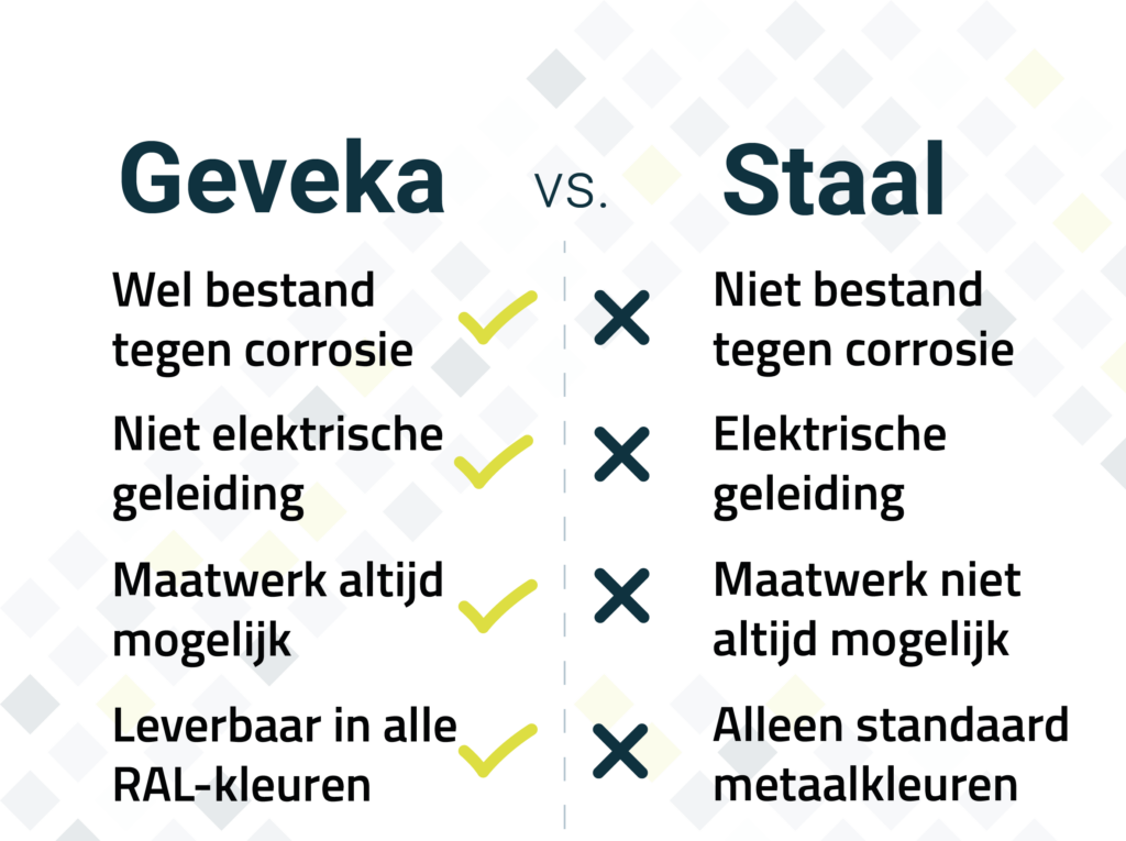 Ja. GVK-profielen bieden een hoge sterkte-gewichtsverhouding en zijn in veel toepassingen een volwaardig alternatief voor staal. Ze buigen niet blijvend door en behouden hun vorm onder langdurige belasting.